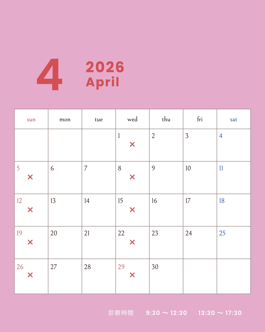 休診日:水曜日・土曜日(第1,3,5)・日曜日・祝日